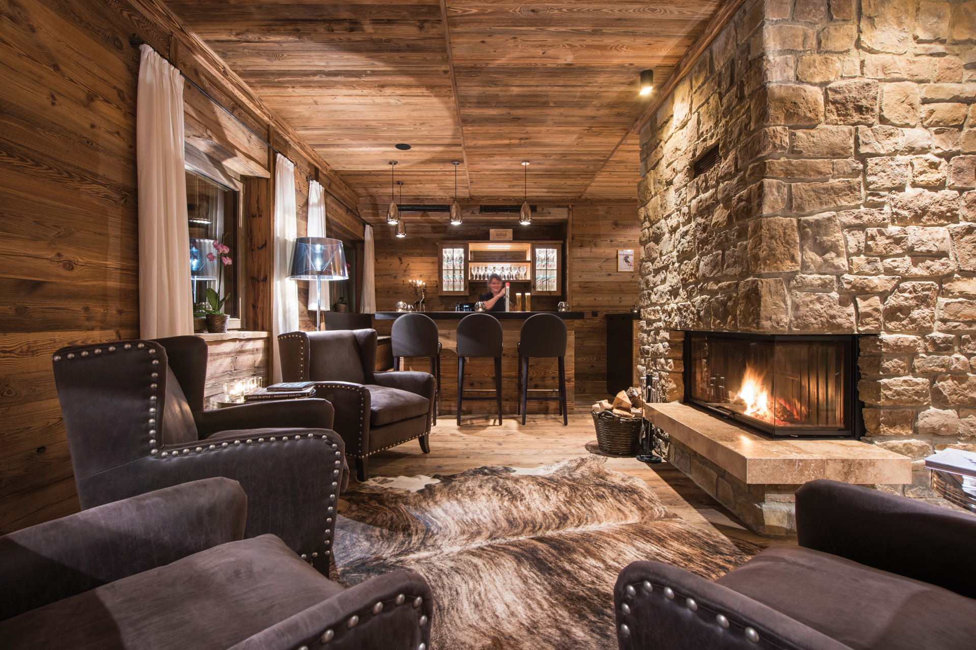 Apartment Kanzi has its own living room, on the first floor of the building, which is open plan with comfortable seating, a roaring log fire, dining table and well-equipped kitchen. Doors open out onto a sun terrace with magnificent mountain views. Apartment Kanzi is home to four double/twin bedrooms with spacious en-suite bathrooms complete with bathtubs and rain showers. The master bedroom has a separate living area.
