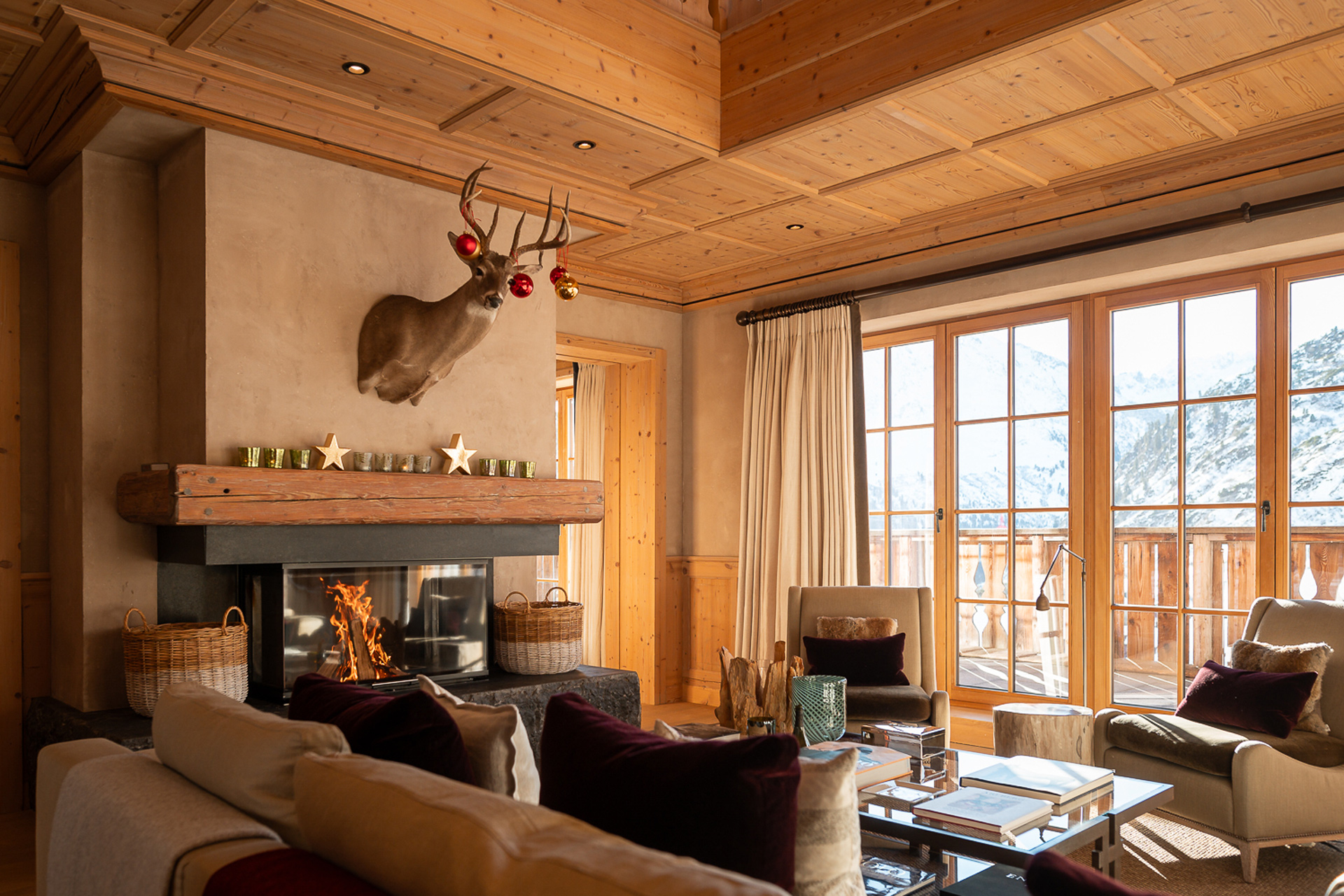 A true ski-in property, this luxurious penthouse teams rustic charm with contemporary flair. There's a large open fireplace, dedicated TV room and private wellness area complete with hammam and sauna.