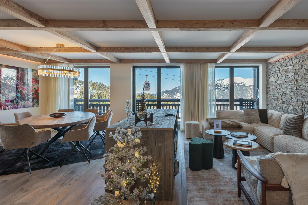 Situated on the third floor of the new Mascara residence, Apartment Limeo is a three-minute drive into central Courchevel 1850, where numerous Michelin-star restaurants, exclusive après-ski bars and designer shops can be found. Ski-in/ski-out access gives guests prime access to the expansive Three Valleys ski area.