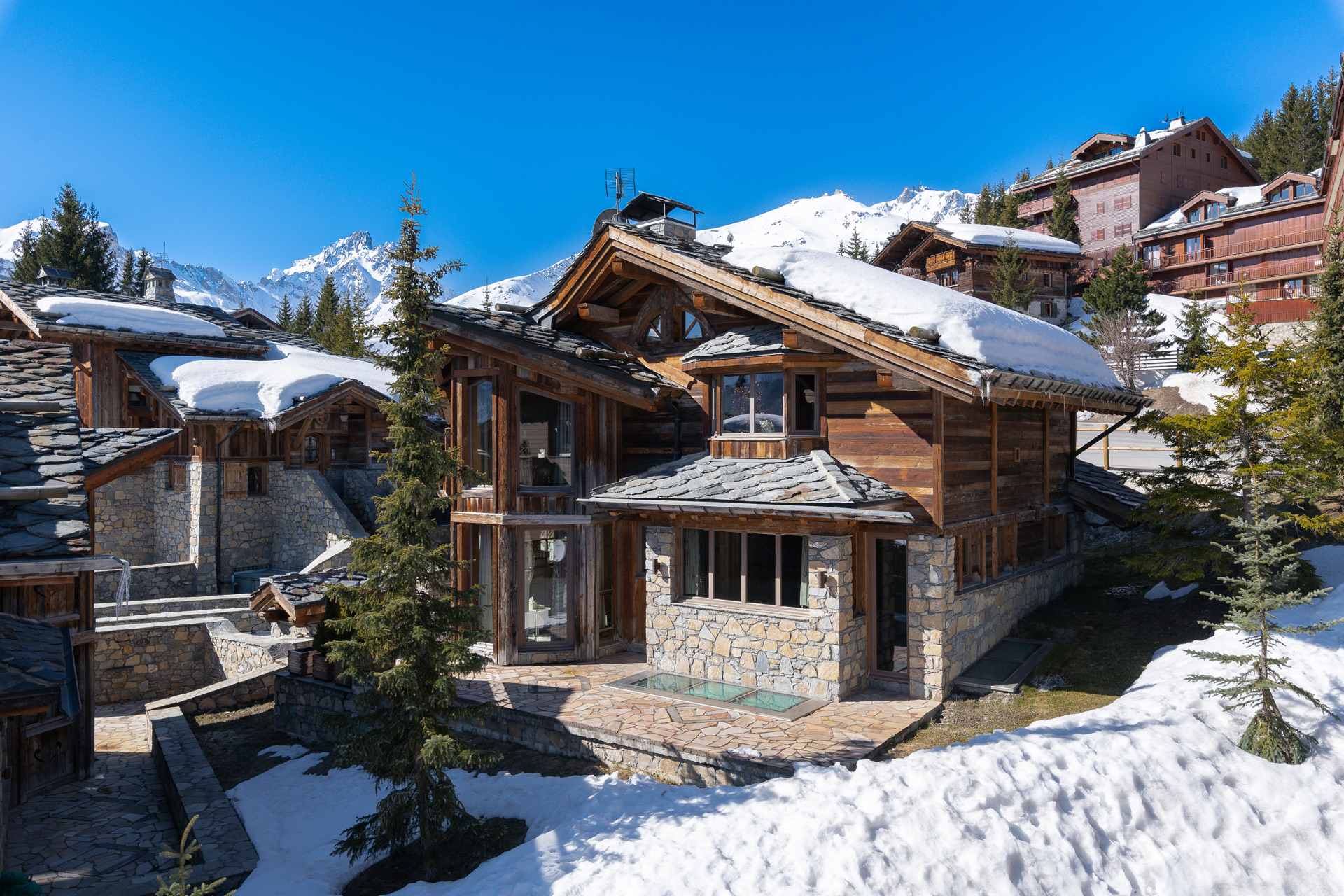 - Enjoy elegant alpine living in the prestigious Bellecôte area, just 100 metres from the slopes, offering easy ski access and a peaceful, private setting.
