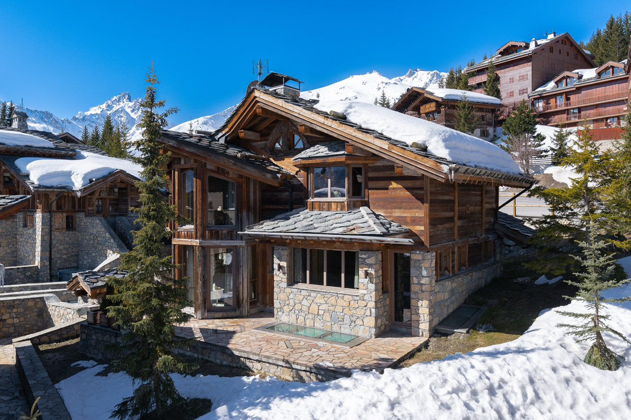 Chalet Carat is nestled in the exclusive Domaine de Bellecôte, just 100m from the green Bellecôte piste, which leads directly to La Croisette’s lift stations and ski schools. The centre of Courchevel 1850, with its luxury boutiques and gourmet restaurants, is a short drive from the chalet.