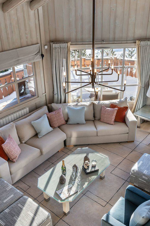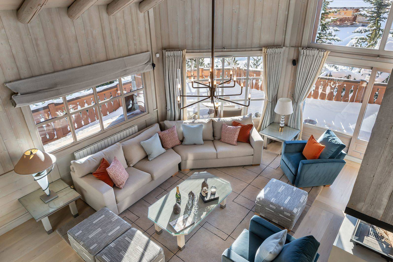 - Admire the dramatic double-height atrium with its floor-to-ceiling windows, flooding the chalet with natural light and framing the snowy landscape.
