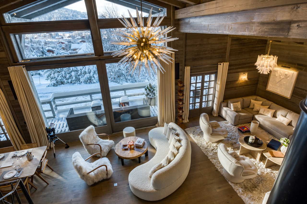 Aerial view of living area at Chalet Mandala in Megeve