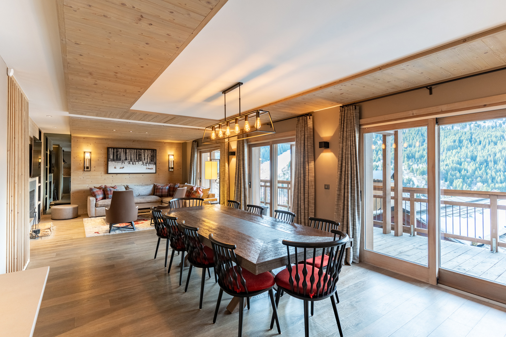 - Three of the four bedrooms open directly onto the terrace, providing effortless access to the outdoor hot tub for post-ski relaxation.