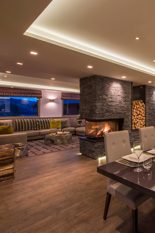 - Gather in the living area that spans almost an entire floor, where a statement fireplace, champagne bar and pool table are framed by southwest-facing picture windows overlooking the Meribel valley.