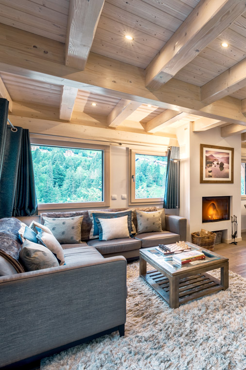 Set over three floors, the chalet boasts panoramic views across the Morzine valley and towards the Pleney and Nyon pistes. The main living area occupies the second floor. Here you'll find a spacious open-plan lounge and dining space with two separate sitting areas, a log fireplace, and a large TV.