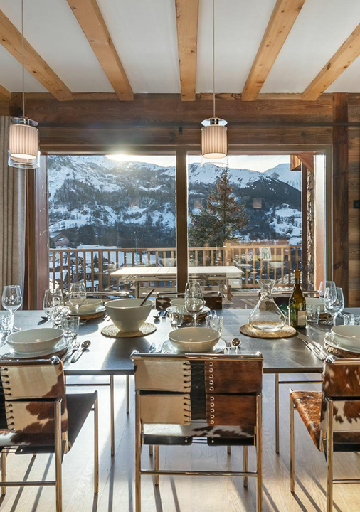 "Nestled 200 meters from the slopes in this cozy and authentic village, this Duchess chalet is a very fine example of successful renovation, led by Lyonnais interior designer Jorge Grasso, who redesigned the structure and interior decoration...The chalet of 230 m2 on 3 levels can accommodate 10 people with terrace and outdoor jacuzzi."