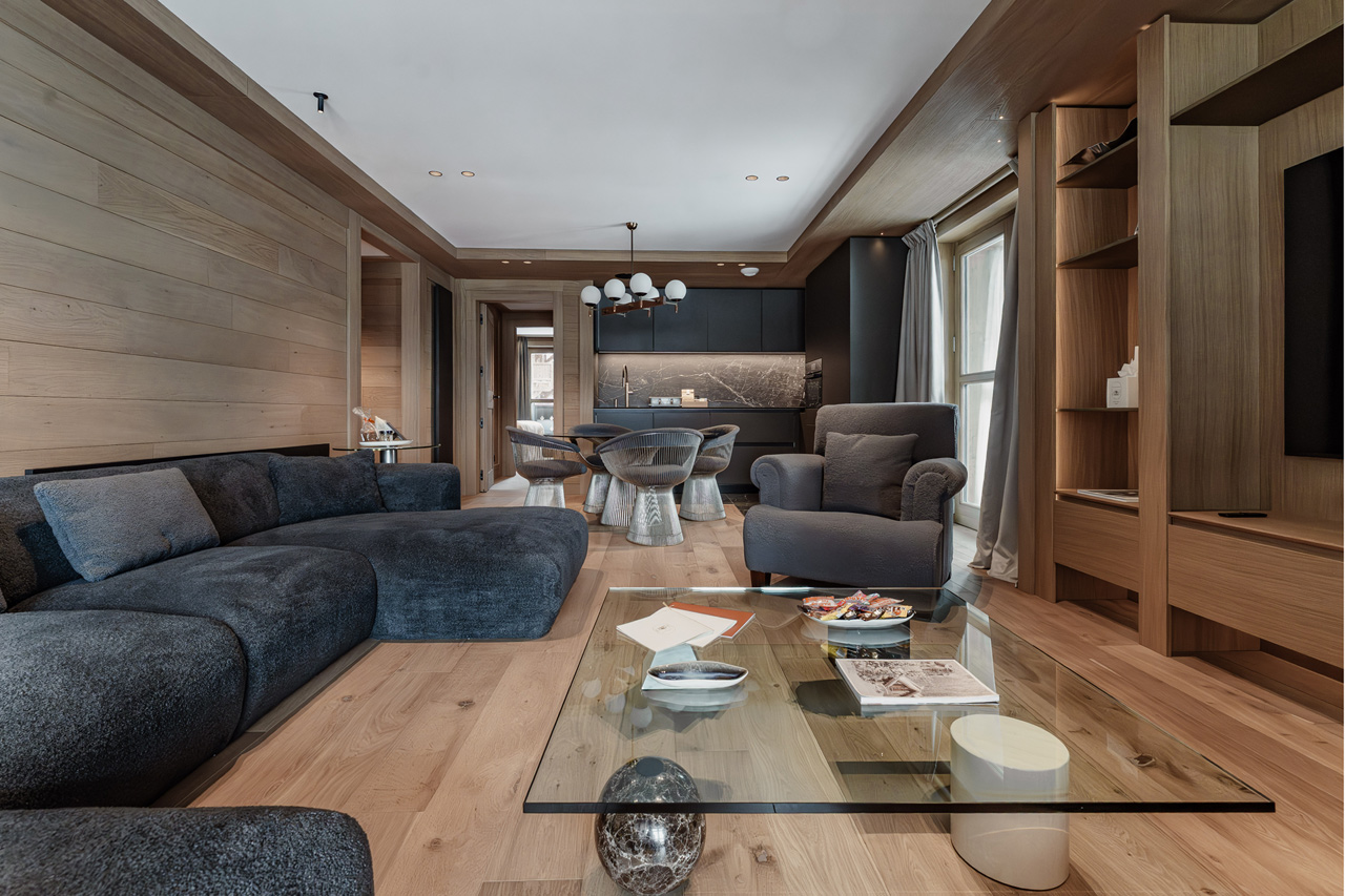 Ideally positioned on Val d’Isere’s main avenue, Le Cinq presents high-end living just moments from the slopes, ski schools and local boutiques. Located on the second floor, the apartment has been thoughtfully designed with stylish furnishings.