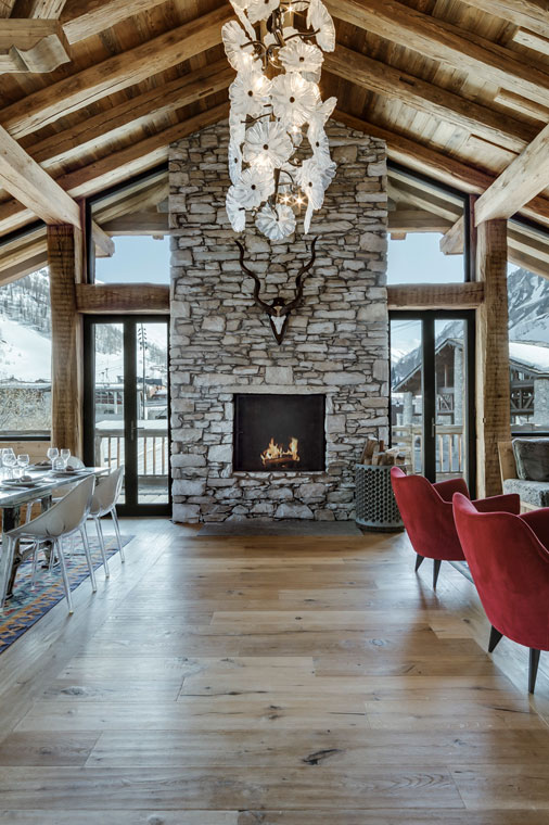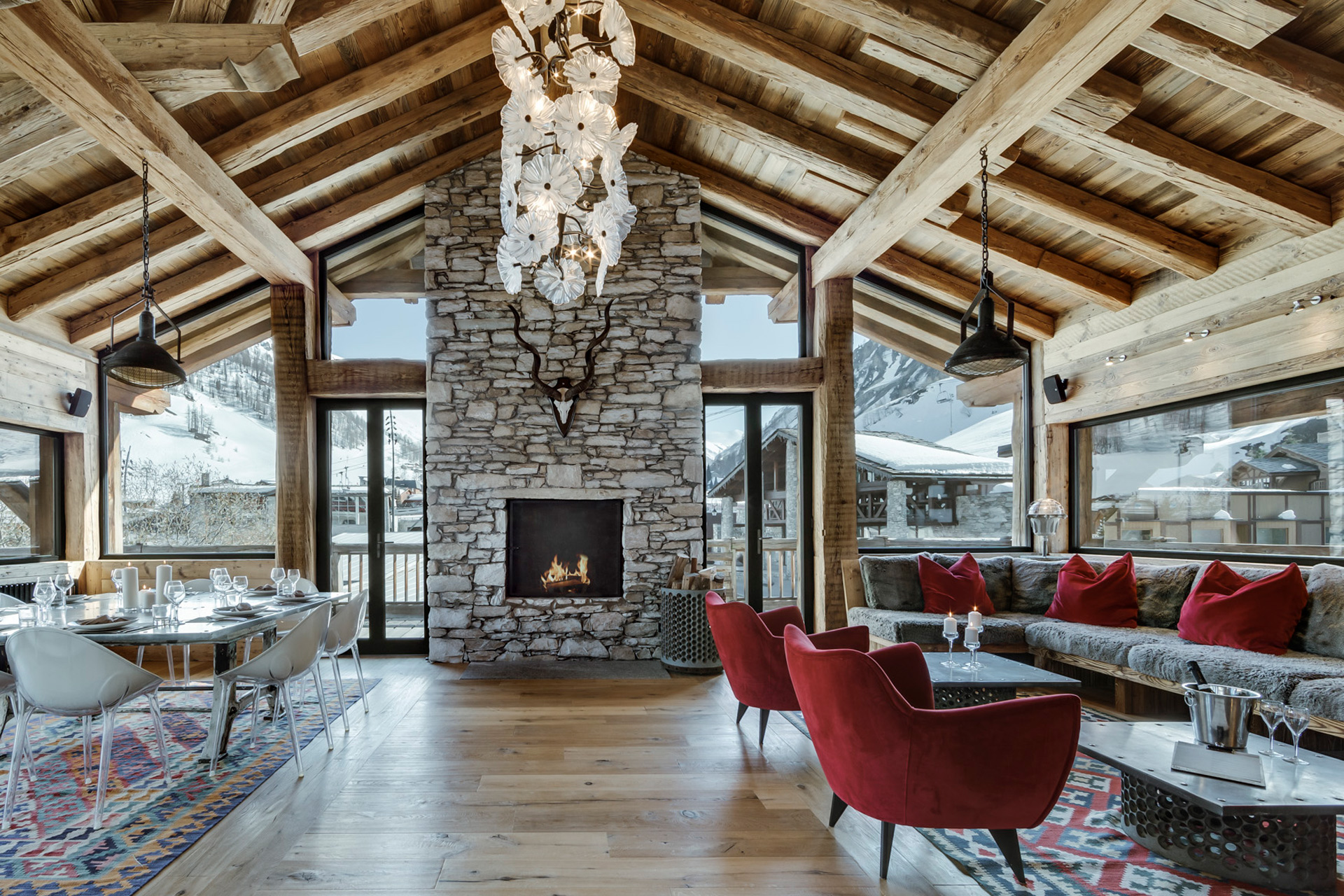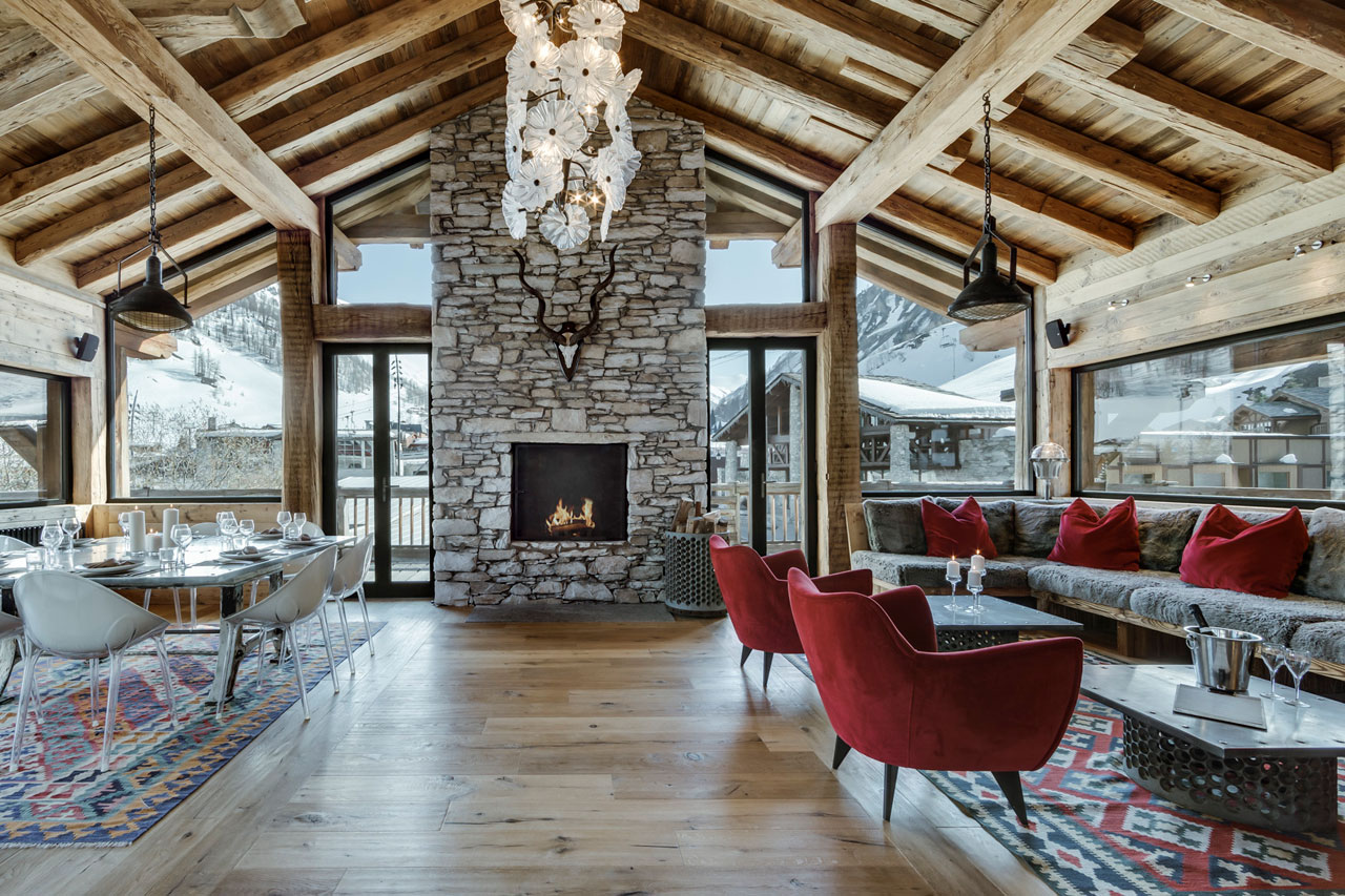 - Spend evenings in the dramatic top-floor living space, where south-facing windows, a double-height fireplace and wrap-around terrace frame sweeping views of Solaise and Bellevarde as the village lights come alive.