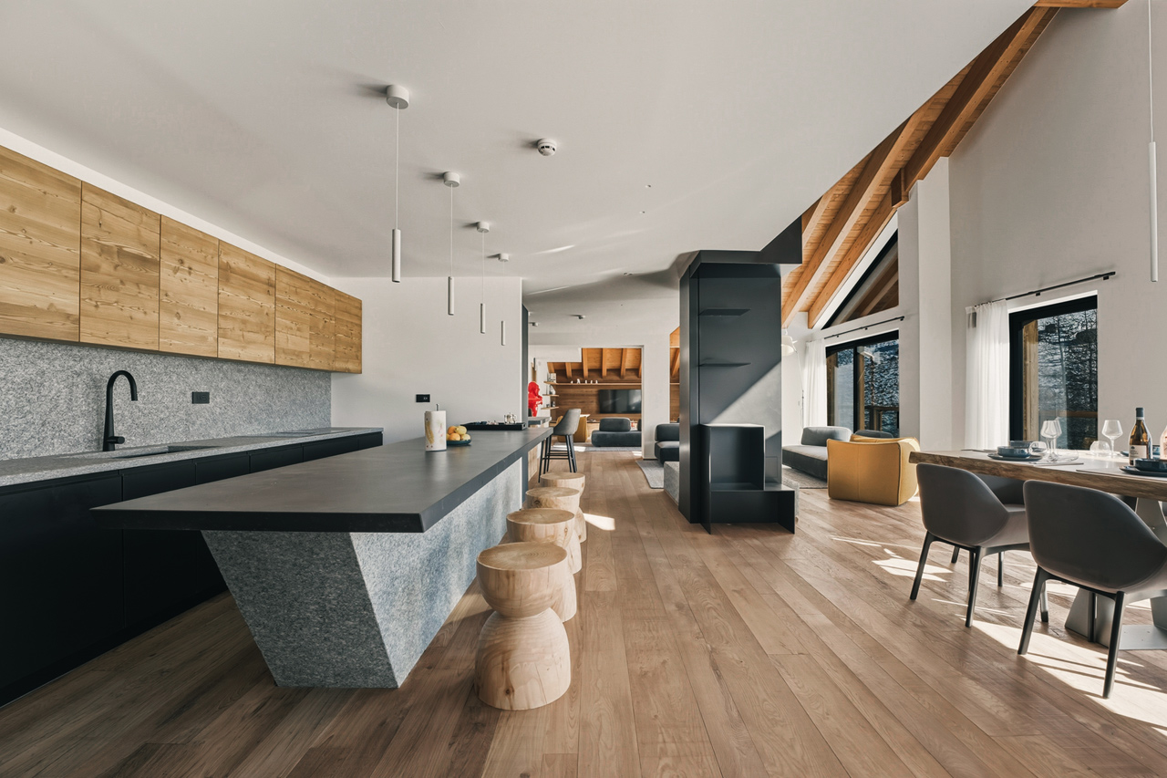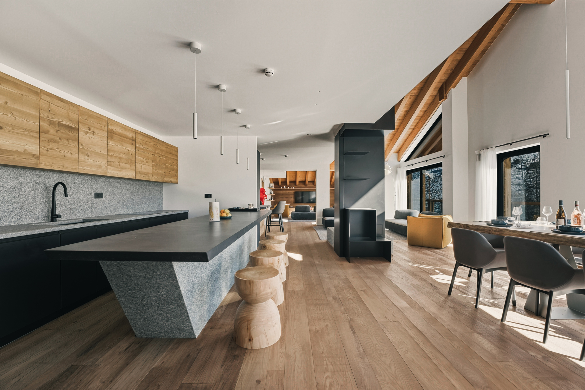Modern dining table at Chalet Snostorm in Breuil-Cervinia