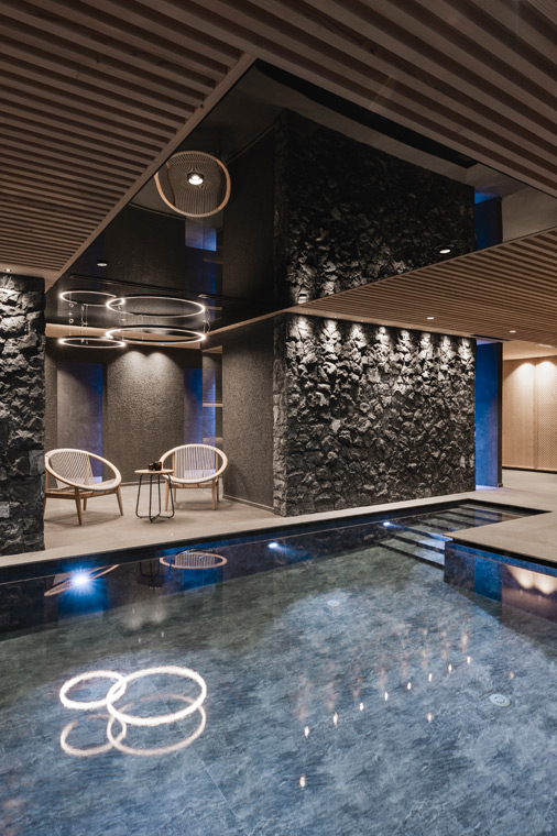 Adjoined to the lodge is the charming Restaurant Muliné, offering homemade, regional gourmet cuisine in a rustic yet refined setting. Nestled in two traditional South Tyrolean lounges—the historic Stube from 1850 and the wood-burning Gardenese Stube—guests enjoy a warm, intimate atmosphere complemented by soft lighting and attentive Ladin hospitality.