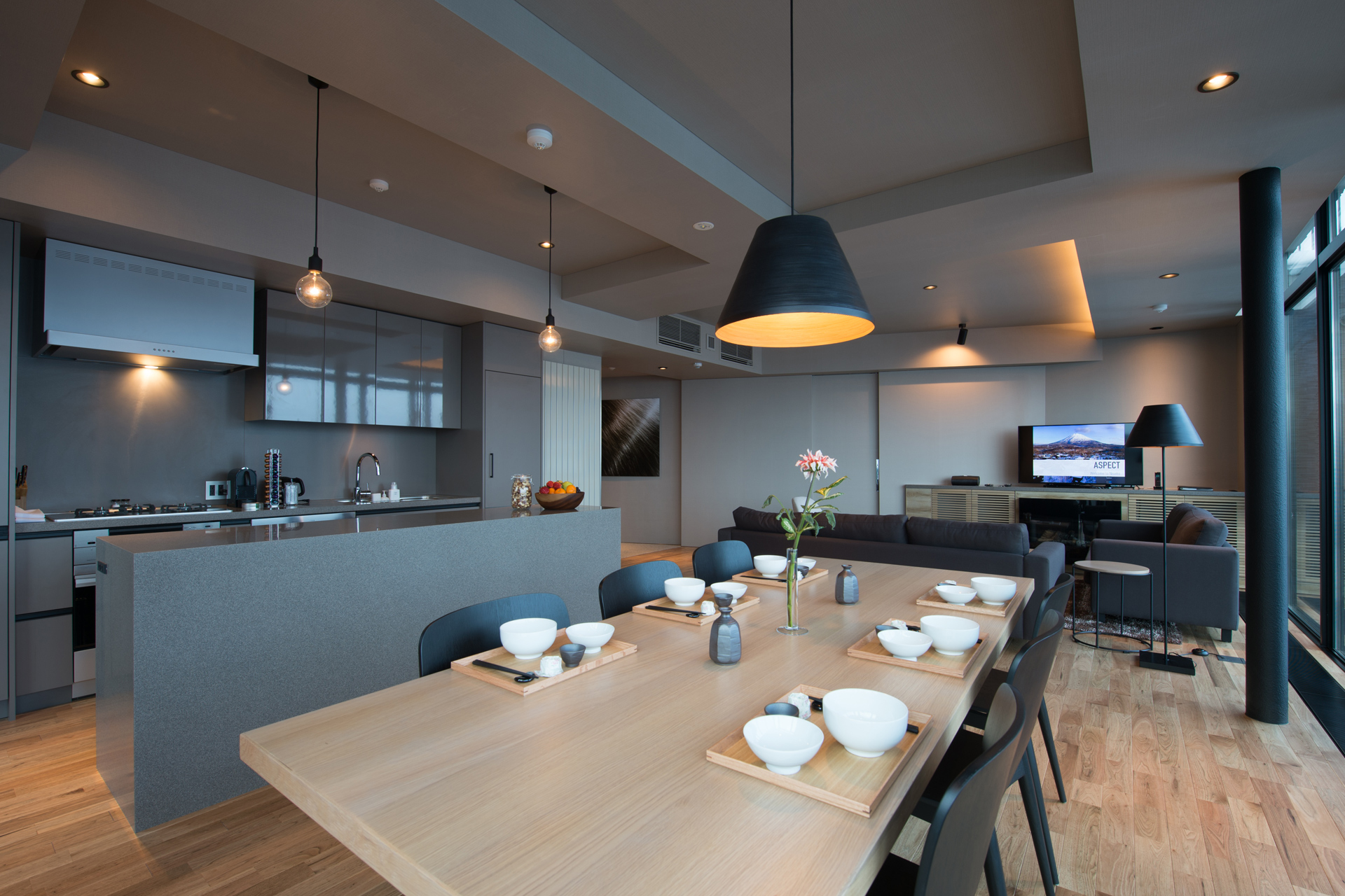 With panoramic views of Mt. Yotei and the slopes, Apartment Aspect 2 is located in Hirafu's Middle Village, also known as "Millionaire's Row." This central location is ideal for accessing the ski area as well as some of Niseko’s finest cuisine and nightlife on the renowned Momiji Street. The contemporary apartment is stylish and features