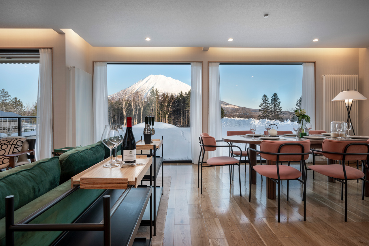 With stunning views of Mount Yotei from the dining area and an open kitchen alongside