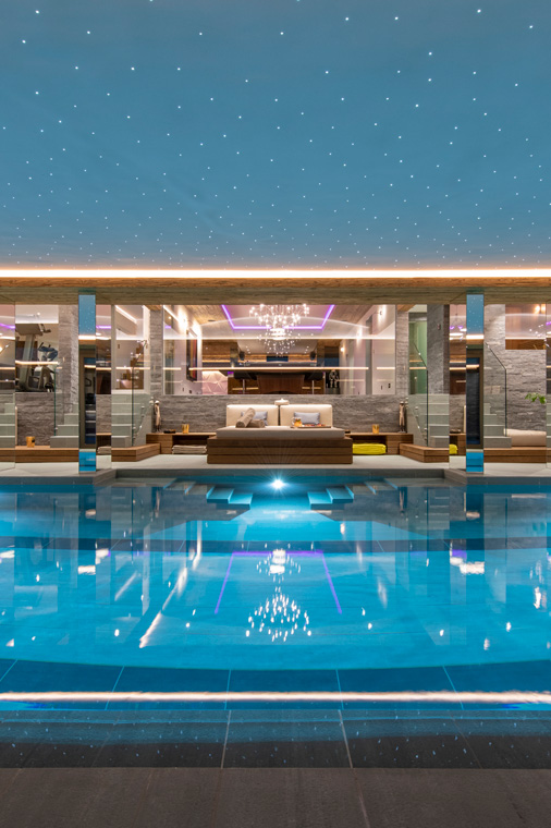 The chalet also has an outstanding spa complete with a 17m indoor swimming pool, relaxing daybeds, sunken hot tub, sauna, hammam, massage room and a well-equipped gym. There is a ski room for storing equipment and a conference room should any corporate groups wish to rent the chalet.