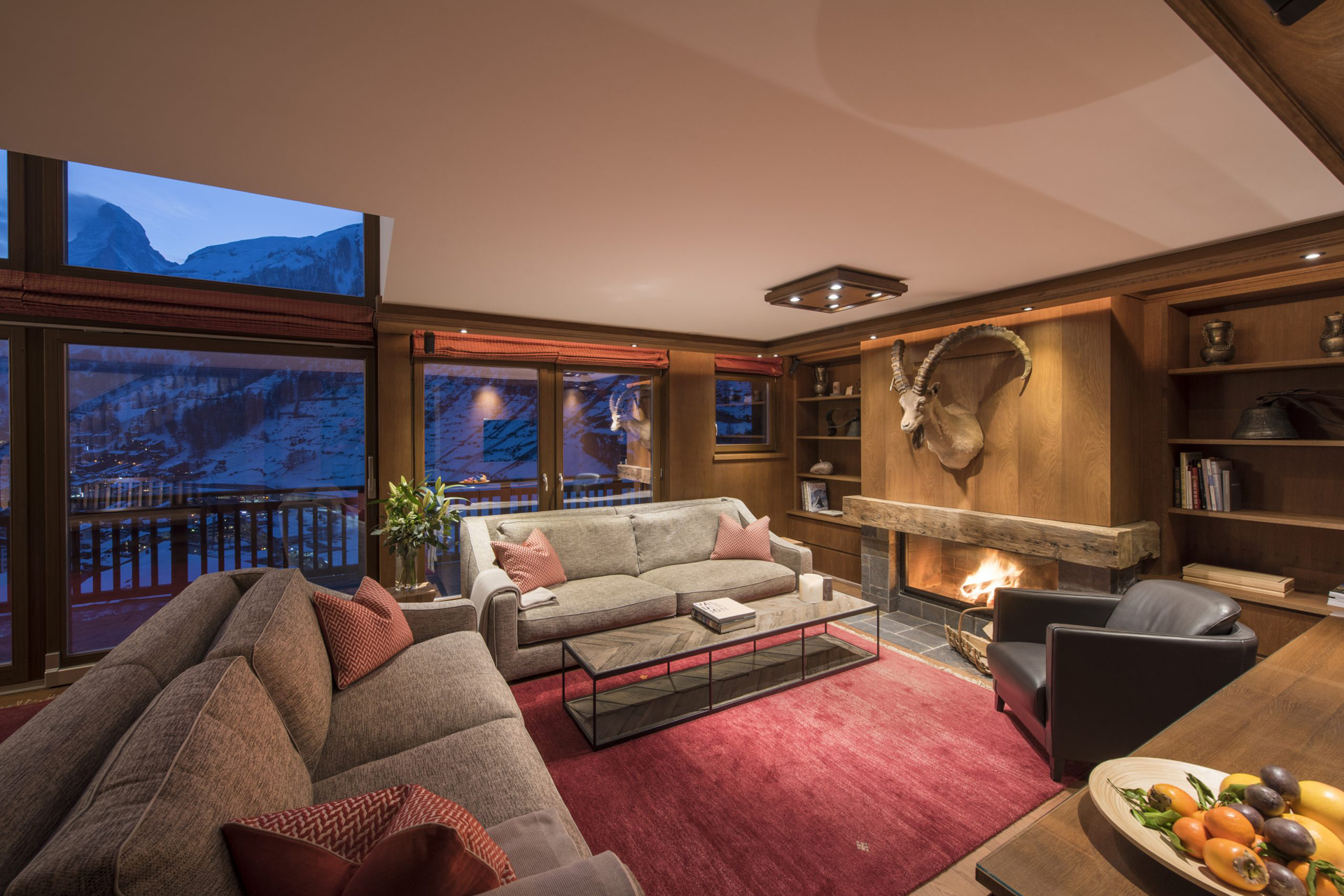 - The open-plan living area is bright and airy, with sweeping views over Zermatt.